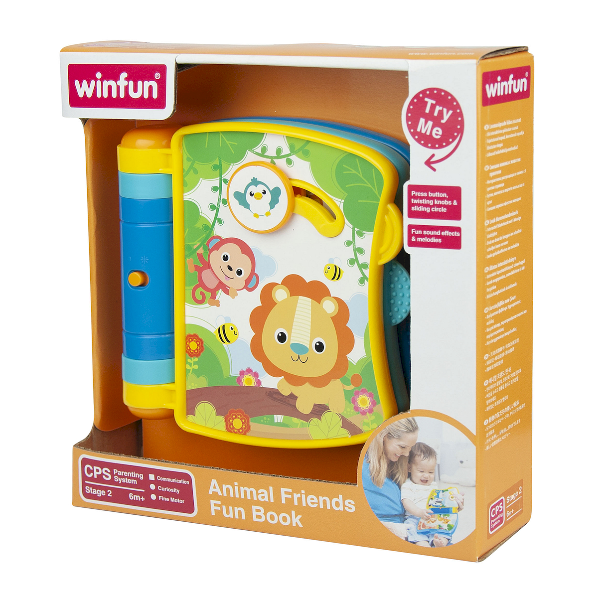 Każda strona zawiera inną kolorową ilustrację. To doskonała okazja do nazywania obrazków, opowiadania historyjek i rozwijania wyobraźni. Kiedy przekręcamy stronę, książeczka wydaje łagodne dźwięki. Ruchome elementy można naciskać, przekręcać, przesuwać. Książeczka gra wówczas melodyjki. Dzięki temu dziecko bawiąc się, ćwiczy małą motorykę. Uchwyty do przekręcania stron książeczki mają różnorodne faktury, co w naturalny sposób rozwija zmysł dotyku.