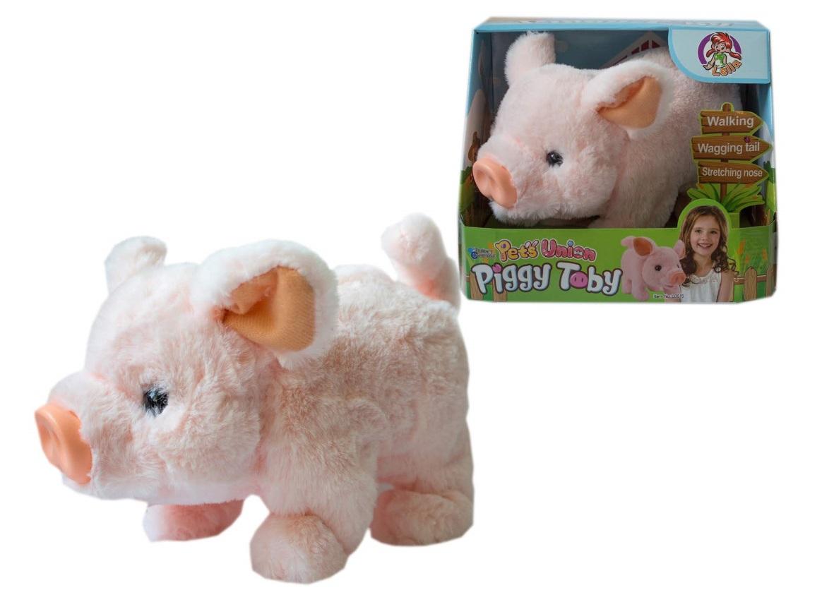 Świnka śmiesznie się porusza: chrumka, potrząsając zabawnie ryjkiem. Ucieszy każdego:.