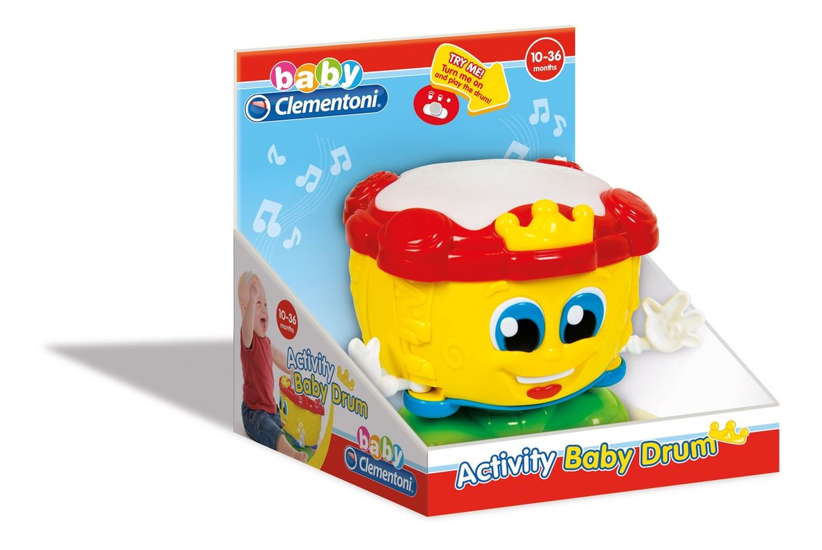Wesoły interaktywny bębenek, zawierający bogaty zestaw melodii, dźwięków oraz efektów świetlnych w rytm melodii. Dziecko może na nim grać jak na prawdziwym bębęnku, obracać nim, naciskać na przycisk w formie korony i ruszać rączkami. Wiek 10-36m+