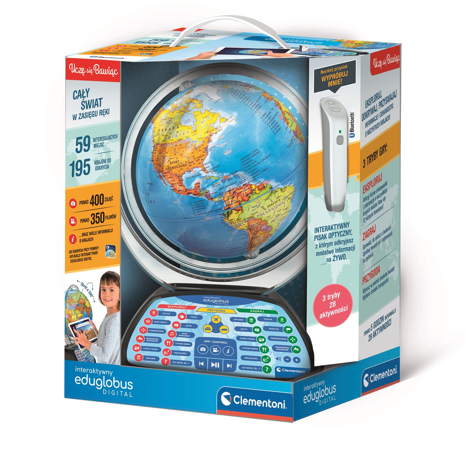 Nowy mówiący globus obraca się o 360°, odsłaniając wszystkie zakątki świata. Niezliczone informacje i ciekawostki przedstawiają wiedzę geograficzną w innowacyjny i zabawny sposób! Za pomocą bezprzewodowego rysika poznasz kontynenty, stolice, powierzchnię, florę, faunę, hymny narodowe, języki, historię, zwyczaje i tradycje, ciekawe fakty, typowe potrawy oraz odległości między stolicami i ciekawymi miejscami. Pobierz aplikację, aby dowiedzieć się, jaka jest pogoda i czas lokalny w różnych zakątkach świata. Ale prawdziwą nowością jest możliwość oglądania zdjęć i filmów z poszczególnych krajów. Dokładne mapy każdego kraju zawierają mnóstwo informacji i ciekawostek geograficznych przydatnych w szkole. W trybie „Przygody” możesz wybrać najbardziej ekscytujący środek transportu — statek, samolot lub samochód. Podążaj za wskazówkami i rozwiązuj intrygujące quizy. Baw się dobrze, skacząc z jednego kraju do drugiego albo podążając „szlakiem jedzenia i wina”. Wiek 7+