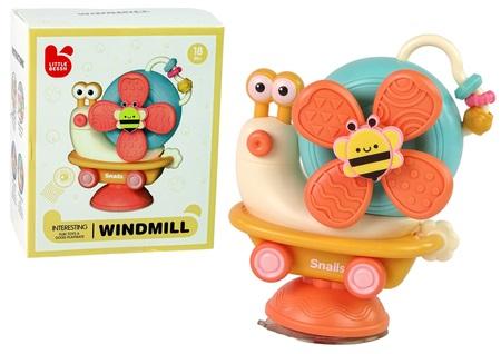 Edukacyjny Wielofunkcyjny Ślimak z Wiatraczkiem Dla Malucha Kolorowa zabawka przypominająca uroczego ślimaka to znakomita propozycja dla Twojego malucha. Żywe kolory oraz wiele funkcji zachęci Twojego maluszka do zabawy. Zabawka wyposażona została w przyssawkę, dzięki której nie będzie się przewracać podczas zabawy. Znakomicie sprawdzi się na stole, stoliczku do karmienia czy podczas wizyty w restauracji. Przyssawka gwarantuje utrzymanie zabawki na miejscu bez konieczności ciągłego podnoszenia jej z podłogi. Idealnie sprawdzi się również jako zabawka do wody. Podstawka z przyssawką jest demontowana, a ślimak wyposażony został w kółka z napędem frykcyjnym co sprawia, że zabawka z pewnością zainteresuje malucha na dłużej i posłuży przez wiele miesięcy rozwoju dziecka. Początkowo jako zabawka do ćwiczeń manualnych, później jako "ślimak- autko" do puszczania po podłodze. Oprócz kółek ślimak posiada również ruchomy wiatrak z uroczą pszczółką, pałąk z koralikami do przesuwania, ruchomą głowę, obrotowy kwiatek oraz dwa ruchome koła zębate. Całość wykonana z przyjemnego w dotyku plastiku w pastelowych, przyjemnych dla oka kolorach. Rewelacyjna zabawka pozytywnie wpływająca na rozwój zmysłu wzroku i dotyku u dziecka! Wymiary zabawki: 14 cm x 13 cm x 7 cm Wymiary opakowania: 15 cm x 13 cm x 8 cm Idealny na prezent. Zapakowany w kartonik. Przeznaczona dla dzieci powyżej 18 miesiąca życia. Zgodna z normą EN71 i certyfikatem CE.