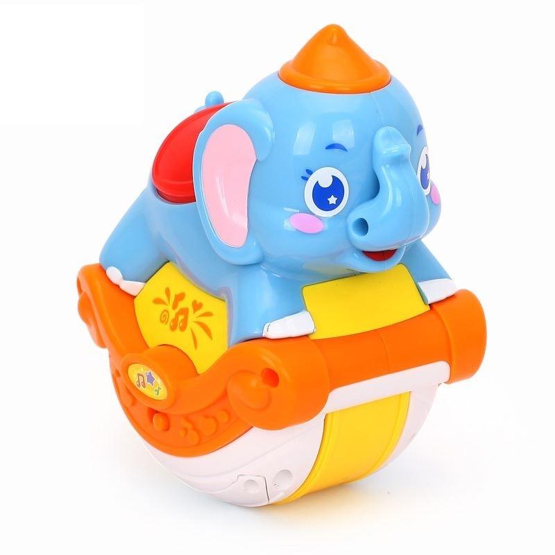 Interaktywny jeżdżący Słonik. Zabawka sensoryczno-dźwiękowa, rozwijająca wyobraźnie Maluszka. Zabawka przeznaczony dla dzieci od 6 miesięcy.