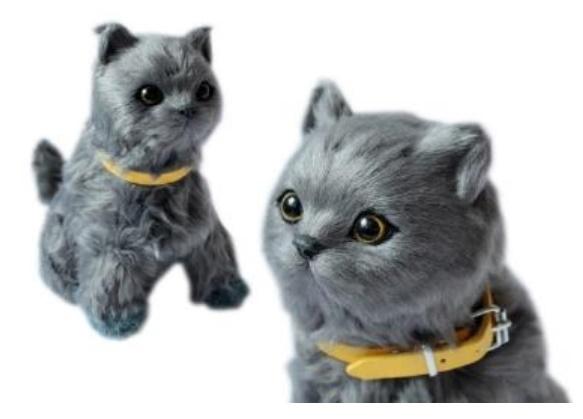 Interaktywny kotek szary z sensorem ruchu, miauczy, rusza głową i ogonem, zasilanie: 3xAA (dołączone).wysokość kotka ok.25 cm