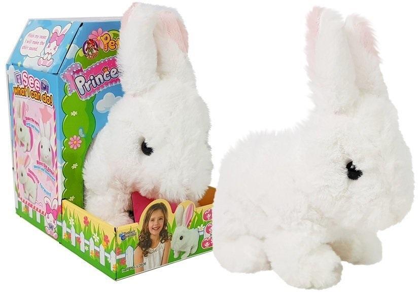 Interaktywny Królik na Baterie Biały Porusza Uszami Dźwięk Twojemu dziecku marzy się miniaturowy króliczek ? Uwielbia małe zwierzątka ? Dzięki tej zabawce Twój maluch będzie mógł mieć swojego kompana do zabaw. Dodatkowo nauczy go odpowiedzialności związanej z posiadaniem pupila oraz zaradności. Biały, puchowy króliczek z dużymi ciemnymi oczami sprawia, że nie można oderwać od niego wzroku. Królik odbija się do przodu. Po pogłaskaniu po nosku wydaje dźwięki, co przypomina prawdziwego króliczka. Po włączeniu porusza noskiem i trzęsie uszkami. Możesz wziąć swojego małego pluszowego przyjaciela wszędzie, stworzyć mu swój własny domek w swoim pokoju. Upewnij się, że główny włącznik zabawki znajdujący się pod brzuszkiem jest w pozycji włączonej "ON". I rozpocznij zabawę. Wymiary królika: 10 cm x 17 cm x 20 cm Wymiary opakowania: 13 cm x 18 cm x 20 cm Zabawka zasilana jest dwoma sztukami baterii AA 1,5 V, które nie są dołączone do zestawu. Przeznaczony jest dla dzieci powyżej 3 roku życia. Zabawka zapakowana w kolorowy, otwarty kartonik idealnie nadaje się na upominek.