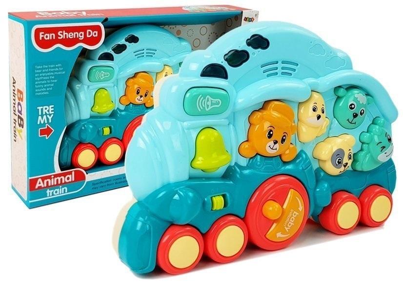 Interaktywna Lokomotywa ze Zwierzętami Odgłosy Zwierząt Efekty Świetlne Niebieska