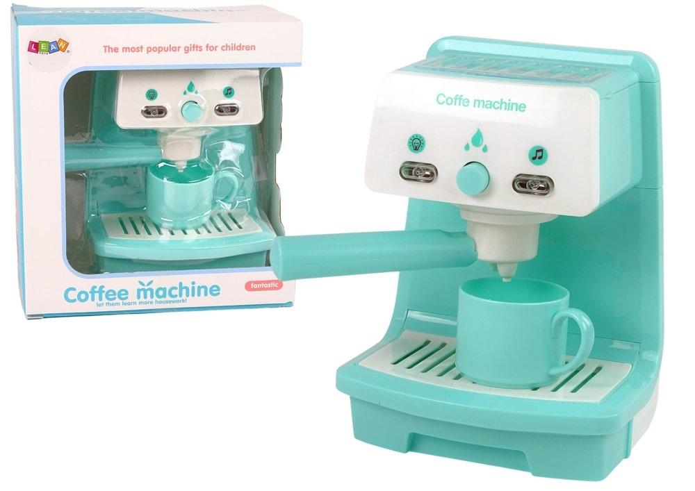 Nalej Wodę i zobacz jak powstaje pyszny napój ! Coffee Machine Ekspres do kawy w kolorze niebieskim z elementami bieli. Świetnie sprawdzi się podczas zabaw w przyjęcie, spotkanie z przyjaciółmi czy jako uzupełnienie dziecięcej kuchni. Ekspres posiada otwierany zbiornik na wodę, wyjmowany młynek, oraz filiżankę. Posiada światło i wydaje dźwięki. Po włączeniu usłyszymy dźwięk mielenia kawy, a po napełnieniu zbiornika wodą i zamontowaniu młynka do filiżanki zacznie się lać woda ! Wymaga baterii 2 x1,5V AA (nie dołączono w zestawie). Pozwól dzieciom uczyć się wiedzy życiowej podczas zabawy. Idealny zestaw na prezent dla każdego dziecka interesującego się tym, co dzieje się w kuchni. Posiada nowoczesny design i przyjemną dla oka kolorystykę. Wymiary Ekspresu Do Kawy: 18 cm x 11 cm x 12 cm Wymiary opakowania: 21 cm x 19 cm x 13 cm