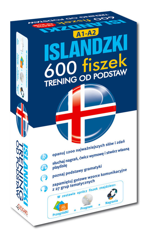 Dzięki nauce z fiszkami: - opanujesz 1200 najważniejszych słów i zdań z 27 grup tematycznych, - poznasz podstawy gramatyki języka islandzkiego, - utrwalisz słówka i poznasz ich użycie w kontekście - przykładowe zdania, - wygenerujesz własną playlistę na odtwarzacz MP3 lub telefon i powtórzysz słówka za lektorem, - utrwalisz wiedzę za pomocą kolorowych przegródek i testów, - możesz ćwiczyć język o każdej porze i w dowolnym miejscu. `Islandzki 600 fiszek Trening od podstaw` to wyjątkowy zestaw zestaw do nauki języka islandzkiego, który tworzą: 600 ponumerowanych fiszek, płyta z nagraniami MP3 i programem multimedialnym oraz praktyczne pudełko z kolorowymi przegródkami. Nauka z fiszkami umożliwia szybkie i skuteczne opanowanie 600 najczęściej używanych słów i wyrażeń, pozwalając na komunikację na poziomie podstawowym (poziom A1-A2). Przykłady użycia słów zawarte w 600 zdaniach to gotowe wzorce komunikacyjne. Dodatkowo w zestawie znajdziesz fiszki zawierające wprowadzenie gramatyczne (m.in. podstawy gramatyki, opis reguł wymowy). Aby ułatwić zapamiętanie materiału metodą skojarzeń kurs podzielono na 27 grup tematycznych. Dołączone do zestawu kolorowe przegródki pozwalają zaplanować i usystematyzować naukę, a nagrania MP3 ułatwiają opanowanie prawidłowej wymowy. Do kursu dołączono program Aktywny Trening z ćwiczeniami, który umożliwia tworzenie indywidualnych list nagrań, odsłuchiwanie ich na dowolnym odtwarzaczu i głośne powtarzanie za lektorem. Dodatkowo dzięki funkcji karaoke możesz sprawdzić na ekranie wyświetlacza prawidłową pisownię słówek, a rozwiązując testy aktywnie sprawdzisz stopień opanowania materiału z fiszek i skutecznie utrwalisz znajomość słownictwa. Kurs językowy z fiszkami to nie tylko skuteczna metoda aktywnego przyswajania słownictwa, ale również wygodny i atrakcyjny sposób na naukę w dowolnej chwili i czasie: w drodze do pracy, szkoły, w podroży czy na spacerze.