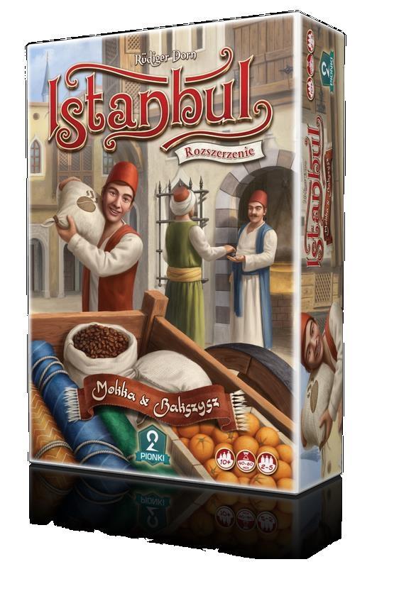 Uwaga: jest to rozszerzenie do gry "Istanbul" Sprzedaż cennych tkanin, najlepszych przypraw i świeżych owoców w Stambule szła świetnie. Ale teraz klienci na bazarze odkryli nowy przysmak: kawę! Jako przebiegły kupiec, wyczułeś, że można zrobić na tym fortunę. Aby skorzystać z tej sposobności, będziesz potrzebował dodatkowego wsparcia. Na szczęście goście w tawernie chętnie przyjmą zlecenie w zamian za bakszysz. Ponadto w ratuszu udzielą ci bezcennej pomocy. Jesteś już doświadczonym kupcem, ale teraz stoisz przed nowym wyzwaniem - handlem kawą! Poznasz cztery dodatkowe Lokacje gdzie główną rolę odgrywa ten nowy smakołyk. Goście w tawernie chętnie przyjmą zlecenie w zamian za bakszysz. Ponadto w ratuszu udzielą ci bezcennej pomocy.