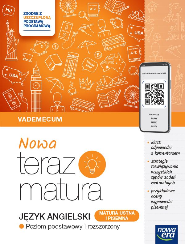 Vademecum ,,NOWA Teraz matura. Język angielski"" pozwala uporządkować i powtórzyć treści przedmiotowe oraz zapoznać się ze sposobami rozwiązywania zadań egzaminacyjnych.