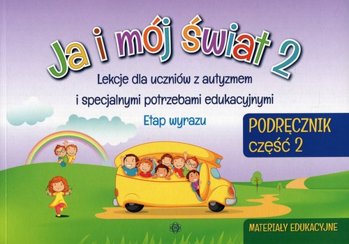 Publikacja została opracowana przez zespół psychologów i pedagogów ze Specjalnego Ośrodka Rewalidacyjno-Wychowawczego dla Dzieci i Młodzieży z Autyzmem w Gdańsku w następującym składzie: Marzena Bednarz, Joanna Bladowska, Karolina Kluczkowska, Weronika Lubocka, Eliza Ludkiewicz, Agnieszka Maślaczyk-Trzasko, Angelika Miłosz, Małgorzata Okoniewska, Magdalena Sowińska, Aleksandra Szakiewicz, Marzena Żmuda-Trzebiatowska. Podręcznik „Ja i mój świat 2” został przygotowany z myślą o uczniach ze specjalnymi potrzebami edukacyjnymi i autyzmem. Uwzględnia specyfikę ich sposobu uczenia się i pomaga w harmonijnym, całościowym rozwoju. Treści zawarte w podręczniku pozwalają na systematyczne i planowe pogłębienie wiedzy przyrodniczej i społecznej. Tematy rozdziałów w większości są zbieżne z tematami z pierwszej części serii, prezentują jednak poszerzoną wiedzę i uczą nowych umiejętności. Atrakcyjne zdjęcia i ilustracje są materiałem wyjściowym do zapoznania się z pojęciami danego tematu. Obok fotografii i obrazków umieszczono krótkie czytanki i wierszyki oraz pytania pomocnicze dla nauczyciela. Publikację przygotowano z myślą o uczniach o zróżnicowanych umiejętnościach, zarówno uczniach bazujących głównie na materiale obrazkowym, jak i tych, którzy potrafią operować wiedzą ogólną i mają dobre rozumienie mowy. Nauczyciel sam decyduje, w jakim zakresie może wykorzystać treści zawarte w podręczniku w pracy z konkretnym uczniem. „Ja i mój świat 2” wprowadza uczniów w świat czytania, zarówno metodą globalną, jak i syntetyczno-analityczną. Celem podręcznika jest kształcenie nowej umiejętności – rozpoznawania etykiet wyrazów. Materiałem pomocniczym w treningu czytania są ćwiczenia kształtujące umiejętność sylabizowania: dzielenie wyrazów na sylaby oraz zapis tekstów czytanek i wierszy z wyróżnieniem sylab.