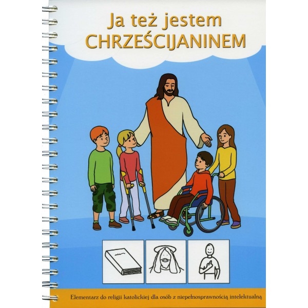 Pozwólcie dzieciom przychodzić do Mnie... (Mk 10, 14) Książka przeznaczona jest głównie dla dzieci i młodzieży z umiarkowaną i znaczną niepełnosprawnością intelektualną. Zawiera, przedstawione w formie obrazków, podstawowe informacje ważne dla chrześcijanina. Tekst jest pisany tak, jakby dziecko oglądające książkę, opowiadało dorosłemu o sobie, jako o dziecku Bożym. Pod każdym z obrazków znajduje się zwięzły podpis słowny oraz symboliczny. Wykorzystano symbole, które są najczęściej stosowane w pracy z dziećmi i młodzieżą z głębszą niepełnosprawnością intelektualną. Przed każdym działem znajdują się uwagi dla opiekuna mogące pomóc mu w wychowaniu religijnym swego podopiecznego i prowadzeniu z nim rozmów o tym, co ważne dla chrześcijanina. „(...) Pierwszy w naszym kraju elementarz do religii katolickiej dla osób z niepełnosprawnością intelektualną. Napisali go znakomici nauczyciele i specjaliści komunikacji pozawerbalnej – z wieloletnim doświadczeniem w pracy z osobami z niepełnosprawnością intelektualną. Trudne, abstrakcyjne dla tych uczniów treści zostały przedstawione poprzez realistyczne, barwne ilustracje i specjalnie dobrane obrazki PCS z wpisanymi zdaniami w tzw. języku łatwym do czytania. Zachęcam nauczycieli religii do korzystania z tej wartościowej pomocy edukacyjnej. Jest to także propozycja dla rodziców dzieci oraz młodzieży z niepełnosprawnościami do wspólnego czytania i ważnych rozmów. Naszym uczniom życzę wspaniałych lekcji religii z książką Ja też jestem chrześcijaninem”. Lidia Klaro-Celej Profesor Oświaty Doradca metodyczny m. st. Warszawy w zakresie kształcenia specjalnego??