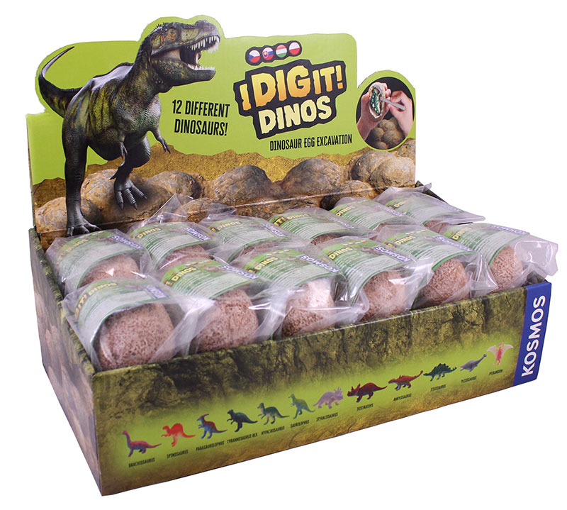 Każde z tych intrygujących jaj zawiera w sobie jednego miniaturowego dinozaura. Musisz tylko używając ostrożnie dołączonego dłuta, wykopać go z prehistorycznej gliny! Bądź odkrywcą wymarłego świata wyjątkowych gadów! Zbierz całą kolekcję dwunastu dinozaurów i naucz się ich rozpoznawać!
