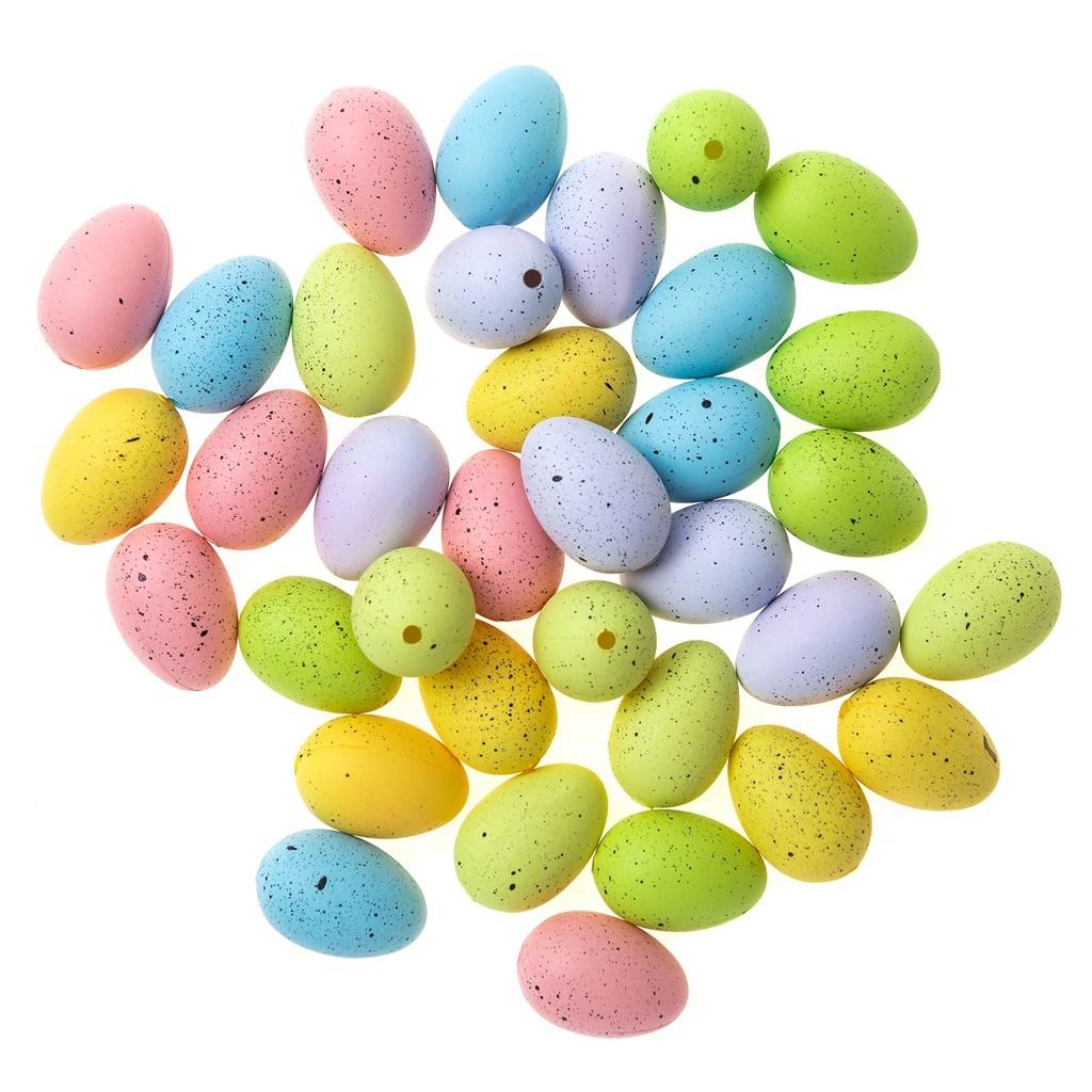 W opakowaniu znajdziesz 36 jajeczek w pięciu kolorach: jasnożółtym, wrzosowym, jasnoróżowym, błękitnym i jasnopomarańczowym.