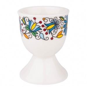 - biały kieliszek na jajko z ozdobnym kaszubskim motywem