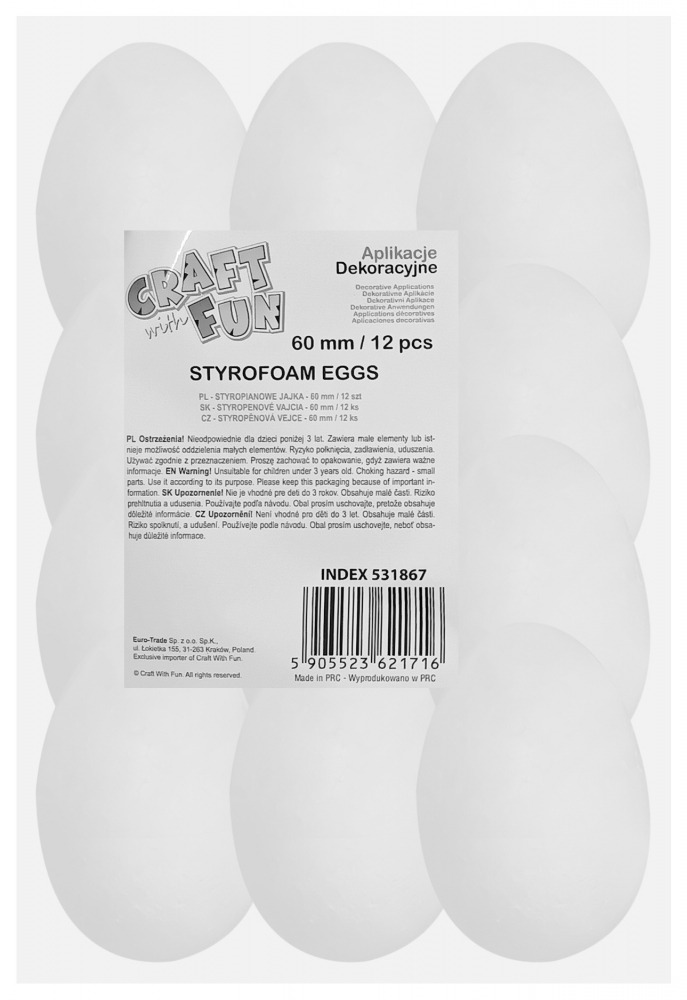 Zawartość zestawu 12 szt. styropianowych jajek 60mm.