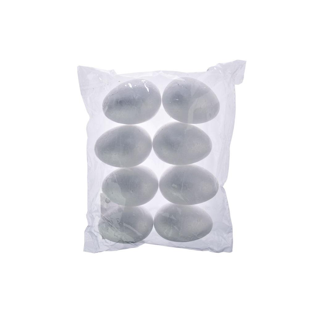 Styropianowe jajko wielkości 6 cm do samodzielnego wykonania dekoracji świątecznych. W opakowaniu 8 sztuk.
