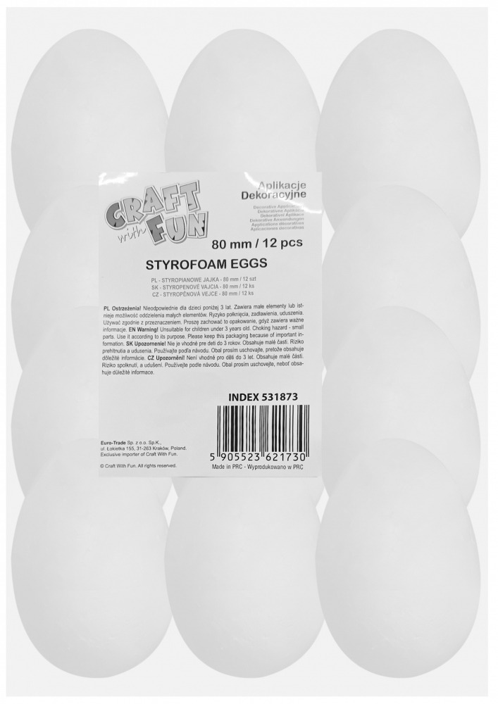 Zawartość zestawu 12 szt. styropianowych jajek 80mm.