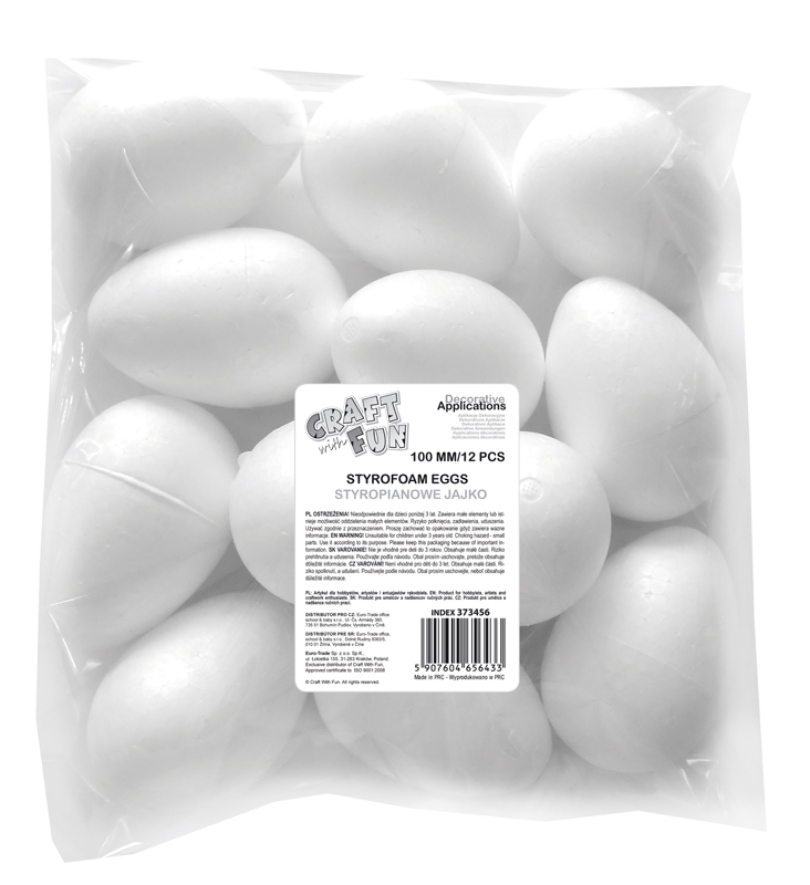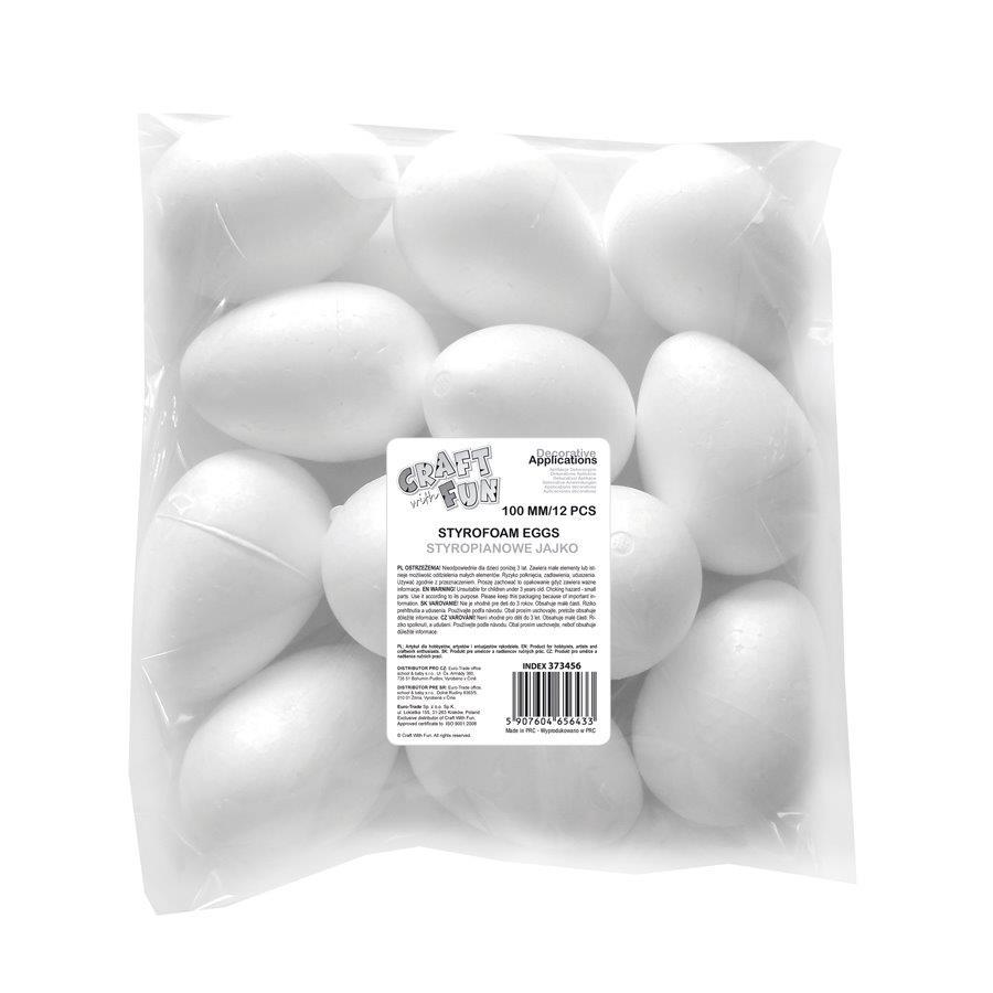 Jajko styropianowe 100mm sprzedawane w opakowaniu po 12 sztuk.
