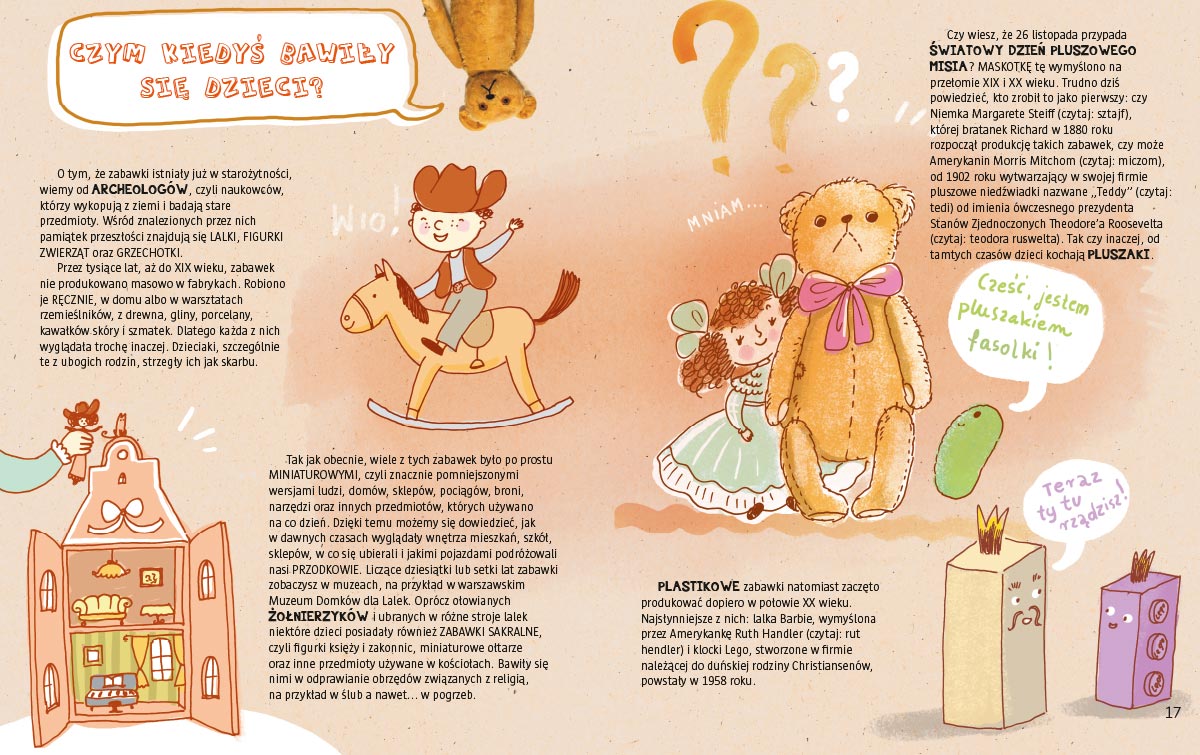 Czy wiesz, kto wymyślił Dzień Dziecka? W co się ubierały hiszpańskie infantki (czyli królewny)? Czym kiedyś bawiły się dzieci? Co je mały mieszkaniec Arktyki? Czy dzieci mogą zarabiać pieniądze? Czy zawsze musiały chodzić do szkoły? Kiedy królem Polski była dziewczynka? Co to znaczy „wylać dziecko z kąpielą”? Kto był największym dziecięcym geniuszem muzycznym? Poznaj odpowiedzi na te i wiele innych pytań z niezwykłej książki o dzieciach. Poza ciekawostkami znajdziesz tu dużo interaktywnych zadań. Zaprojektuj razem z nami własne emotikony, zostań encyklopedystą, napisz list do polityków o tym, co dorośli powinni robić, żeby dzieci były bezpieczne i szczęśliwe, załóż z przyjaciółmi bank czasu, narysuj własny łapacz snów, włącz się do akcji Wielkie Ogólnoświatowe Liczenie Gwiazd! Ciekawostki, zabawy, zdania, inspiracje do rozmów z najbliższymi, podejmowania wyzwań i niebanalnych aktywności. Dzieciaki potrafią zmieniać świat. I Ty też!