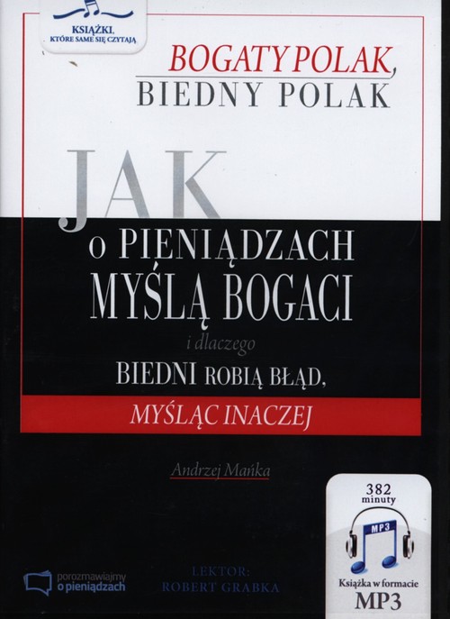 „Bogaty Polak, biedny Polak. Jak o pieniądzach myślą BOGACI i dlaczego BIEDNI robią błąd, myśląc INACZEJ” to poradnik zupełnie odmienny od wszelkich pozycji z kategorii „inteligencji finansowej”, do jakich wszyscy przywykliśmy. Autor pokazuje bowiem, że „myślenie” o finansach to nie wszystko. Żeby cokolwiek zmienić w swojej sytuacji, trzeba przede wszystkim „działać”. W tej publikacji nie znajdziesz jedynie ogólnych „dobrych rad” – znajdziesz w nim przede wszystkim bardzo praktyczne przykłady, co należy zrobić i jak wyjść z sytuacji, w której aktualnie się znajdujesz. W sposób czasem bulwersujący i niespotykany porusza problemy, które do tej pory były tematem tabu. Bo w przekonaniu wielu istnieje mocno Bogaty Polak, biedny Polak - myśleniezakorzenione postrzeganie Polski jako spuścizny postpeerelowskiej, w której tylko niektórym udaje się do czegoś dojść. Bierze pod uwagę uwarunkowania historyczne, społeczne i religijne, które w zasadniczy sposób przyczyniły się do postrzegania przez Polaków pieniędzy jako „zła koniecznego”, „źródła kłopotów”, aniżeli neutralnego narzędzia, które można kontrolować. Udowadnia, że w kraju niekoniecznie mlekiem i miodem płynącym, też można osiągnąć szczyt satysfakcji finansowej. Obala mity i stereotypy, które do tej pory przeszkadzały wielu Polakom pozbyć się kompleksów i stać się bogatymi. Wielu Polaków do dziś spędzało czas na pogoni za pensją, podwyżkami i pewną pracą na etacie. Niewielu. jak do tej pory, ma świadomość, że nie ilość, ale sposób zarządzania pieniędzmi decyduje o prawdziwym bogactwie.