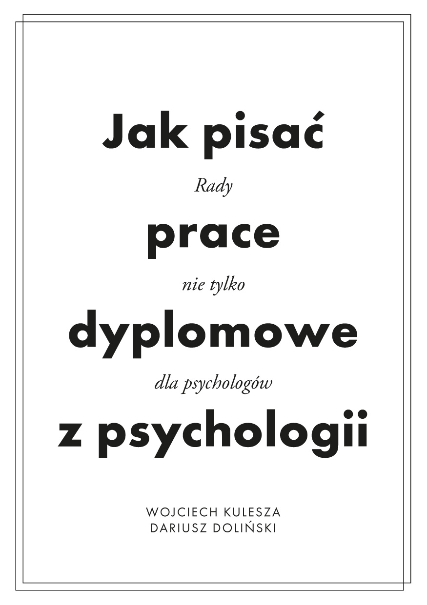 Gdy kończyliśmy pracę nad tym poradnikiem, cztery nasze artykuły znajdowały się w recenzji (w zachodnich czasopismach: psychologicznych, medycznych, marketingowych), cztery kolejne pisaliśmy, przygotowywaliśmy trzy granty, prowadziliśmy międzynarodowe badania stanowiące podstawę kilku następnych prac, a kilka szkiców opartych na już policzonych danych czekało na dokończenie. Kiedy zaczynaliśmy przygodę z pisaniem, takie tempo było nie do wyobrażenia, gdyż przygotowanie nawet polskiego tekstu wymagało co najmniej 12 miesięcy. Napisaliśmy więc poradnik, który kiedyś, na początku naszej drogi, sami chcielibyśmy przeczytać. I podpowiadamy w nim, jak zacząć swoją przygodę z pisaniem. Ufamy, że dzięki niemu droga od „kiedyś” do „dzisiaj” nie zajmie Czytelnikowi tyle czasu, co nam: kilkanaście czy kilkadziesiąt lat. Praca dyplomowa powinna być zrozumiała nie tylko dla autora, lecz także – i przede wszystkim – dla czytelnika. Wojciech Kulesza i Dariusz Doliński piszą, w jaki sposób pracować nad pisaniem pracy dyplomowej, aby to osiągnąć. Jak powiadają: „Łatwo jest pisać trudno. Trudno jest pisać łatwo”. I pokazują, jak pisać tekst łatwy dla czytelnika. - Bogdan Wojciszke Wiele razy myślałem o tym, że łatwiej jest samemu napisać pracę naukową niż poradzić komuś, jak on taką pracę powinien napisać. Wojciech Kulesza i Dariusz Doliński – bez żadnej łopatologii – mądrze , cierpliwie i dowcipnie podsuwają przyszłym autorom prac magisterskich świetne pomysły. Jeśli studenci (co wcale nie jest pewne) przeczytają ten poradnik, to bez wątpienia napiszą bardzo porządne prace magisterskie. Czytajcie więc, bo warto! - Wiesław Łukaszewski