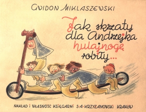 "Jak skrzaty dla Andrzejka hulajnogę robiły…" to reprint książeczki dla dzieci, którą w roku 1943 napisał i pięknie zilustrował Gwidon Miklaszewski, znany rysownik, karykaturzysta i twórca filmów animowanych. Przed skrzatami zadanie nie lada – budowa hulajnogi dla Andrzejka. W ruch idą narzędzia stolarskie, prężą się skrzacie muskuły i leje się pot. Ale co to? Piąty skrzacik nie pomaga – ciągle śpi, w rączce ściskając bacik! Czy uda się przygotować, i to w tajemnicy, taki prezent, gdy pracuje tylko czterech braci? Oj, zdziwi się piąty skrzacik – ten, co ciągle śpi. Jego też czeka niespodzianka…