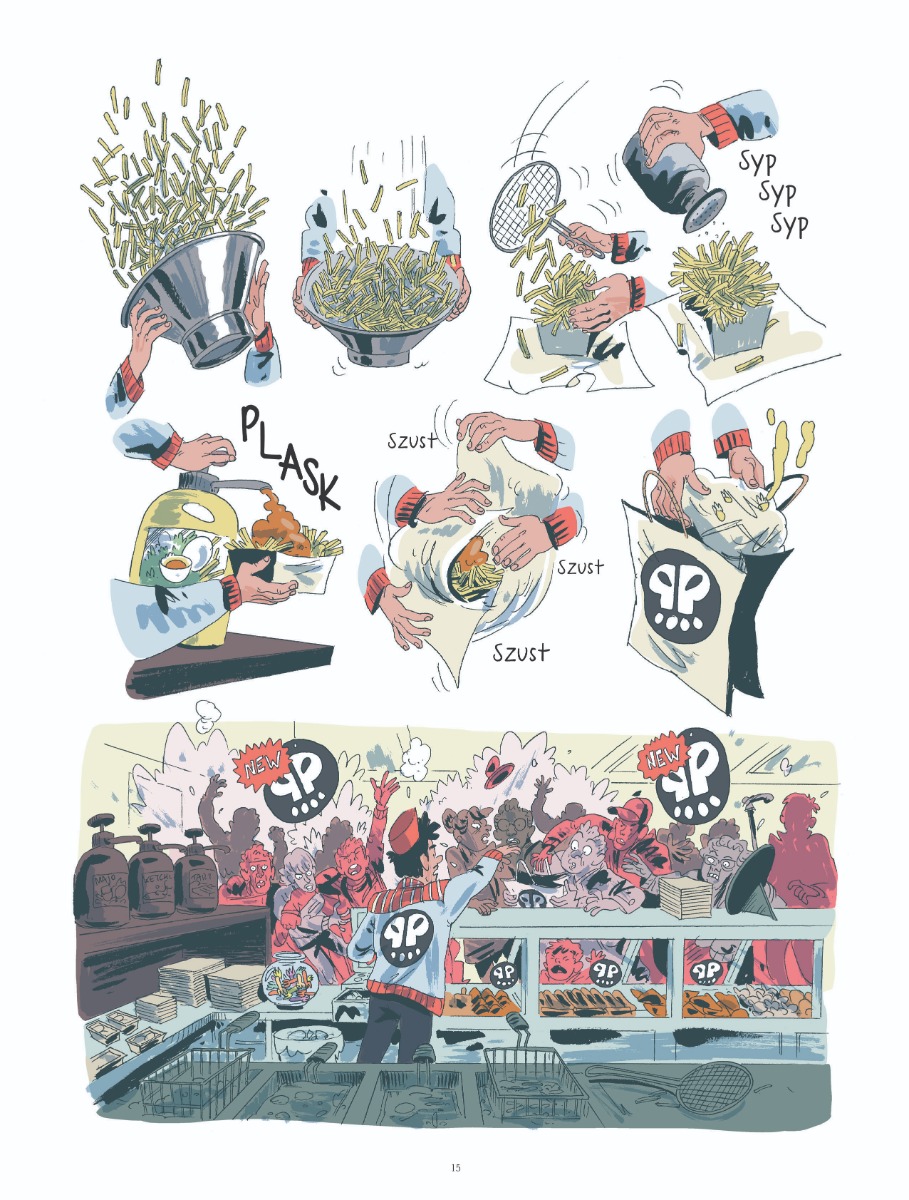 Drugi i ostatni tom humorystycznej historii o walce miłośników warzyw z wielkim przemysłem spożywczym. Wszyscy oszaleli na punkcie nowego jedzenia, tyle że jego spożywanie ma przerażające skutki uboczne... Jaśmina postanawia dowiedzieć się prawdy o działalności producenta dziwnych ziemniaczanych dań. Razem z przyjaciółmi wyrusza do jaskini lwa, gdzie zaryzykuje życie, aby cały świat mógł zdrowo jeść! Twórcą opowieści jest belgijski scenarzysta i rysownik Wauter Mannaert, który zyskał uznanie komiksami autorskimi: one-shotami „Weegee. Serial photographer” i „El Mesías” oraz właśnie miniserią o Jaśminie, za którą zdobył dwie belgijskie nagrody branżowe (Willy-Wandersteen i Atomium). Polski czytelnik zna już jego styl graficzny z cyklu przygodowo-fantastycznego „Misja” (scen. Frédéric Maupomé).