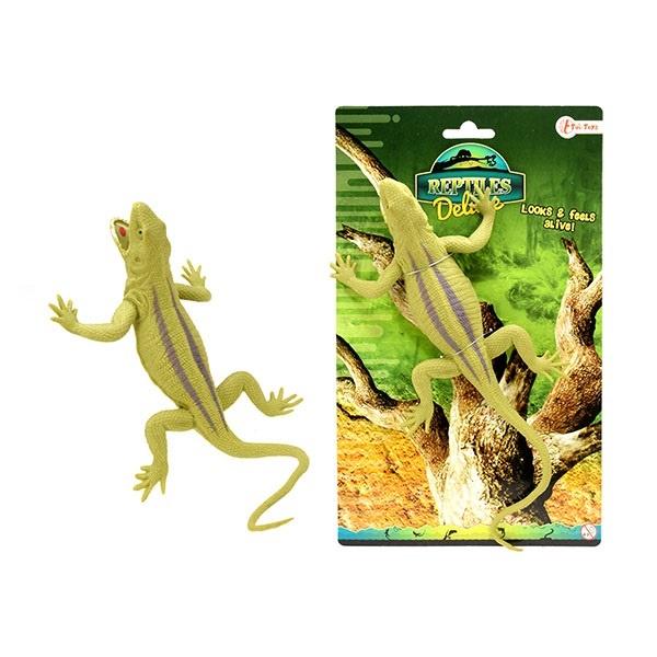 Jaszczurka w kolorze zielonym to niewiele odbiegająca kształtem i teksturą imitacja gada o egzotycznym ciemnym ubarwieniu w białe kropki. Ruchomy ogon i otwarty pysk nadaje jaszczurce naturalizmu podczas zabawy. Jaszczurka w pozycji wyczekującej w małych rozmiarach bardzo łatwo nada się do zakamuflowania nawet w ciężko dostępnych miejscach. Dostarczy przy tym wiele frajdy, a mała waga pozwoli na usadowienie jej na przykład na gałęzi drzewka. Może stanowić również ciekawą alternatywę do ozdób w akwarium i oczkach wodnych.