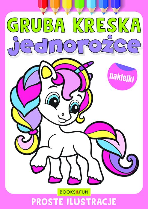 GRUBA KRESKA to kolekcja kolorowanek z prostymi rysunkami skierowana główniedo najmłodszych dzieci. Gruby obrys ułatwi kolorowanie i zapewni świetną zabawę. Nasza seria została przygotowana tak, aby ułatwić dzieciom ćwiczenie ręki. W środku czeka na nie niespodzianka – naklejki, które podpowiedzą maluchom, jakich mogą używać kolorów.
