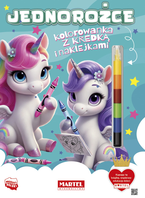 Zapraszamy do czarującego świata jednorożców, w którym kreatywność nie zna granic! Nasza kolorowanka to 16 stron magicznych obrazków, które dziecko może ożywić barwami. W zestawie znajduje się kredka z 6 kolorami, która pozwala na szybkie przełączanie barw - idealna dla małych dłoni, a jednocześnie wytrzymała, by towarzyszyć każdej twórczej przygodzie. Dzięki dołączonym naklejkom każdy obrazek zyska niepowtarzalny charakter, a malowanie stanie się prawdziwą fantastyczną przygodą!