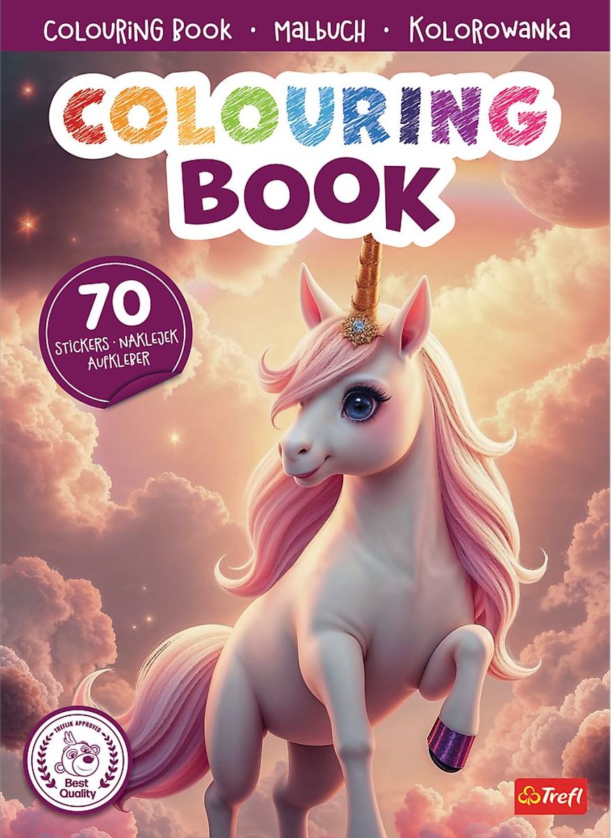 16-stronicowa kolorowanka z magicznymi jednorożcami. W środku aż 70 naklejek.