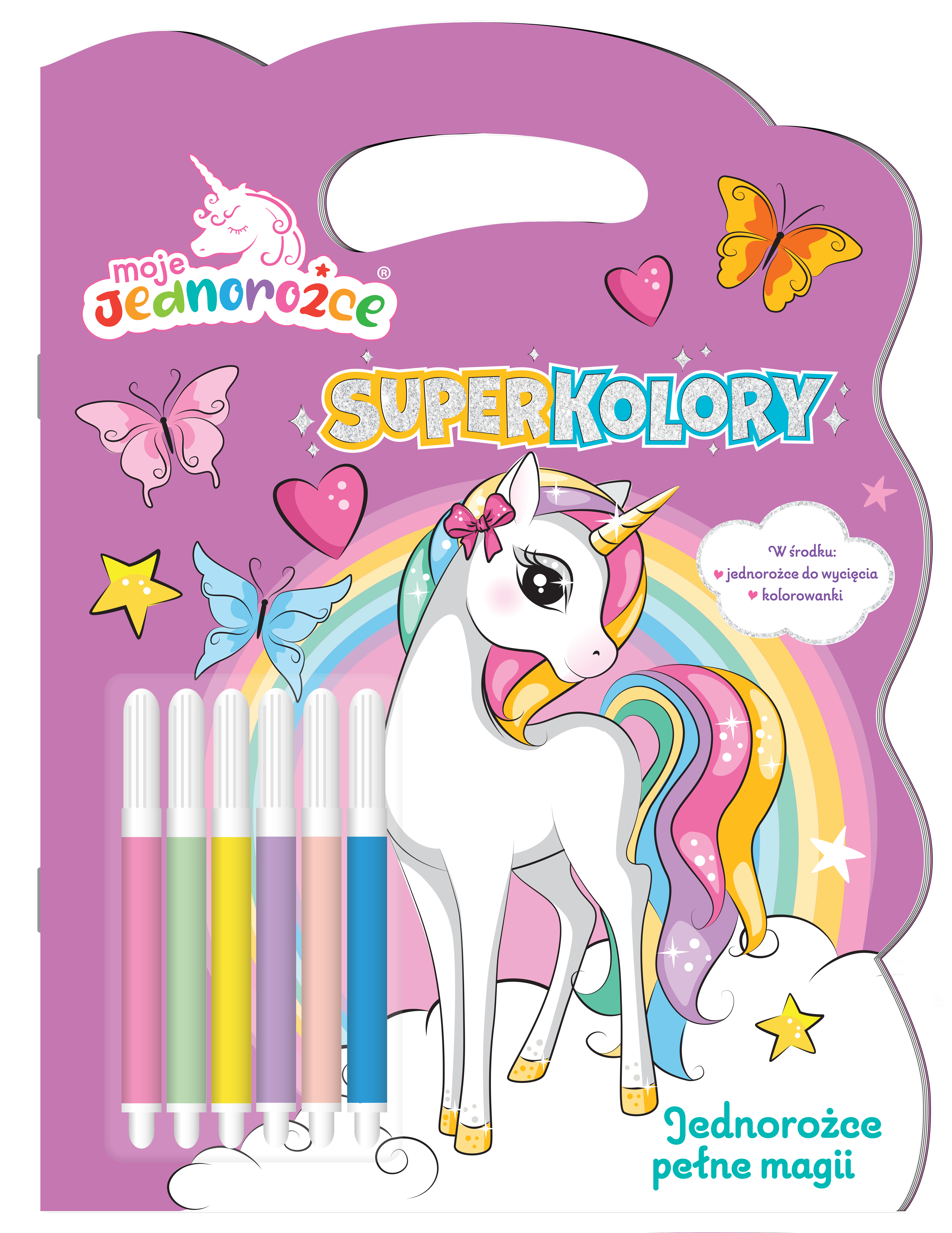 Książka SUPERKOLORY to atrakcyjne kolorowanki z rysunkami ulubionych bohaterów. Do każdej z publikacji dołączone są piękne flamastry. Wystarczy, że dziecko pomaluje obrazek, a rysunki z postaciami ulubieńców nabiorą kolorów. Świetna zabawa gwarantowana!