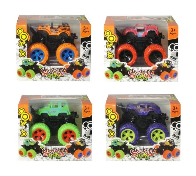 Pojazd jeep z oponami terenowymi. Auto na napęd cierny, omija przeszkody. Obraca się o 360 stopni. Z napędem friction.Produkt występuje w kilku wersjach kolorystycznych, wybierany losowo. Cena dotyczy jednej sztuki. Zabawka zapakowana w kartonowe opakowanie z przezroczystym okienkiem. Zabawka dla dzieci od 3 lat. Podane wymiary są wymiarami opakowania.