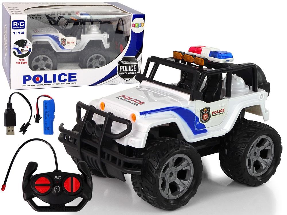 Auto Zdalnie Sterowane R/C Patrol Policji JEEP Policyjny z otwieranymi drzwiami Do zadań specjalnych w trudnym terenie ! Świetna zabawa gwarantowana ! Od teraz wszyscy pasjonaci motoryzacji oraz tego zawodu a także i dorośli tatusiowie, będą mogli wczuć się w rolę policjantów i ruszyć na akcję jeepem policyjnym. Pasjonująca zabawa sprawi, że każdy chłopiec nie tylko będzie zadowolony i pochłonięty frajdą, rozwinie także wiele cech, koordynacji i precyzji, która przydaje się przy prowadzeniu auta oraz wyobraźnię. Prezentowany samochód w charakterystycznym biało niebieskim kolorze rozwinie wyobraźnię dziecka i pozwoli na kreatywną zabawę . Dodatkowo efekty świetlne oraz otwierane drzwi dodają realizmu zabawce. Pilot R/C do zdalnego sterowania pojazdem składa się z czarnych elementów połączonych z czerwonymi przyciskami. Auto Patrol Policji posiada sygnały świetlne, świecące koguty. Odbiera na częstotliwości 27 Mhz, co redukuje wszelkie zakłócenia podczas zabawy. Autkiem można w prosty sposób sterować, sprawiając, że jedzie do przodu/tyłu, w prawo/w lewo. Wymiary elementów zestawu: - autko jeep policja : 29 cm x 14 cm x 815 cm - pilot: 12 cm x 8 cm x 3 cm Wymiary opakowania: 28,5 cm x 12 cm x 12 cm Autko Policja zasilane jest akumulatorem 3.6 V (w zestawie razem z kablem USB), natomiast pilot dwoma sztukami baterii 1.5 V AA (brak w zestawie). Całość zapakowana jest w estetyczne pudełko z witrynką. Zabawka posiada certyfikat CE, dzięki czemu jest świetnym pomysłem na prezent dla każdego dziecka. Autko przeznaczone jest dla dzieci powyżej 8 roku życia.