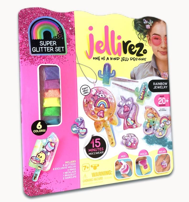 Jelli Rez to zestaw kreatywny, który pozwala tworzyć wysokiej jakości, modną i wyjątkową biżuterię z żywicy w zaledwie w 15 minut. Dostępne w zestawach elementy pozwalają na dowolne łączenie ozdób i tworzenie unikalnej biżuterii. Idealny zestaw Jelli Rez Creator dla dziewcząt będących w podróży, z miejscem do przechowywania w jednym kompaktowym, przenośnym opakowaniu. Możliwe stworzenie 20 wzorów. Stwórz naszyjnik, pierścionki i spinki do włosów, w unikalnym designie, który stworzysz w prostym, 3-etapowym procesie: po prostu wymieszaj, połącz i noś!
