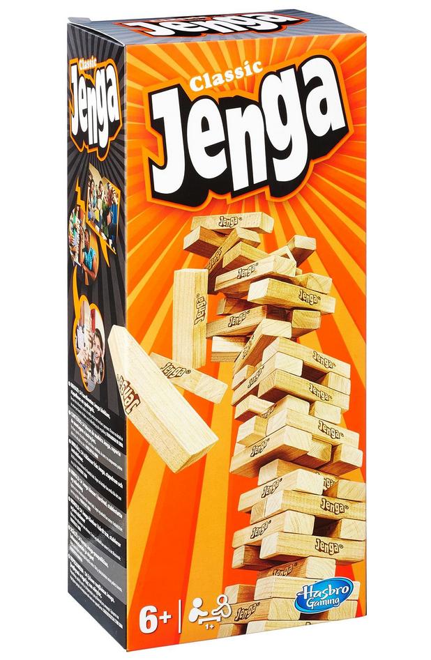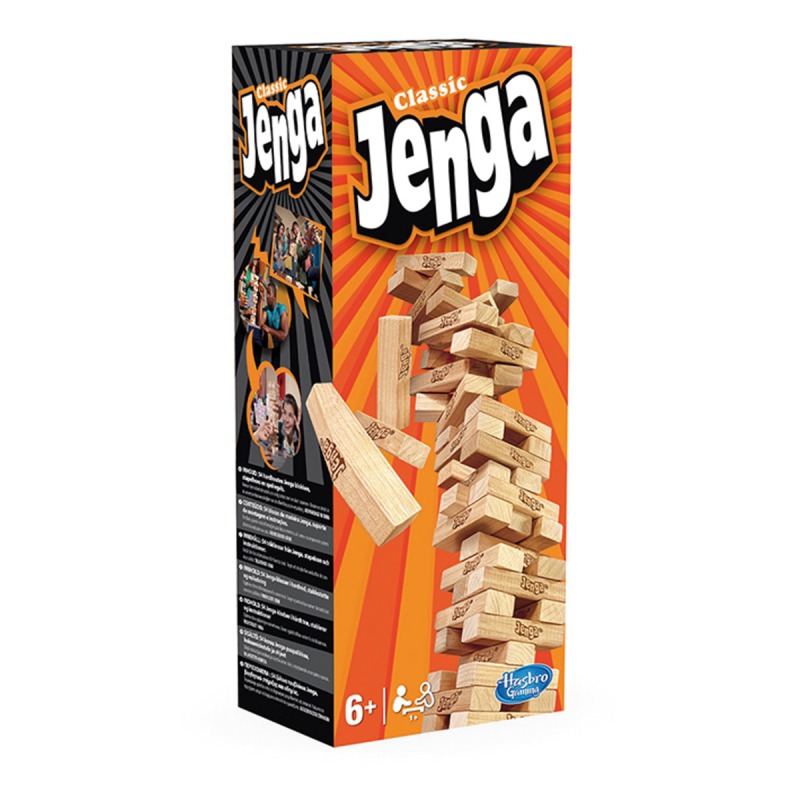 Popularna gra powraca! Ułóż wieżę, aż do samego nieba! Wyciągaj klocki jedną ręką i układaj je na szczycie wieży. Osoba, która przewróci wieżę przegrywa. Zawartość: 54 drewniane klocki Jenga, rękaw do układania wieży z klocków, instrukcja. Wiek: 6+