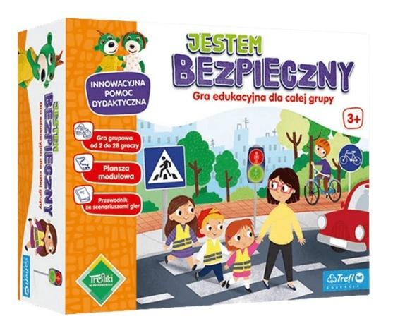 Jestem bezpieczny edukacyjna gra grupowa dla dzieci, to angażująca gra edukacyjna dla przedszkolaków i uczniów wczesnoszkolnych, stworzona we współpracy z pedagogami, psychologiem dziecięcym, policjantem i ratownikiem medycznym. Poprzez zabawę uczy dzieci zasad bezpieczeństwa w domu, na drodze, podczas zabawy i w kontaktach z nieznajomymi. Zestaw zawiera m.in. modułową planszę, trzy talie kart z pytaniami i scenkami, pchełki, kubeczki, żetony oraz kostkę co pozwala na przeprowadzenie wielu wariantów rozgrywki w grupie do 28 osób.