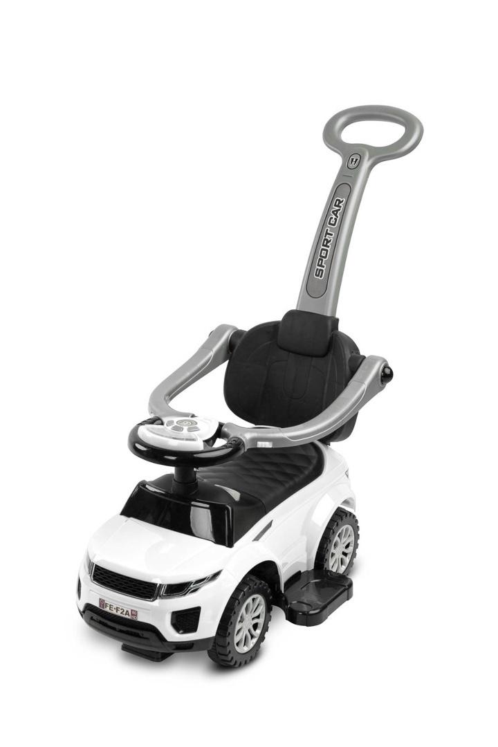 Jeździk Sport Car od Toyz to nieodzowny towarzysz spacerów. Dzięki swojej konstrukcji można łatwo go dopasować do potrzeb pociechy. Może być pchaczem, chodzikiem i typowym jeździkiem - wystarczy zdemontować odpowiednie elementy. Jeździk posiada zasilaną bateriami kierownicę ze światełkami i dźwiękami, a także bardzo przydatny schowek pod siedziskiem. Podnoszone barierki chronią przed upadkiem maluszka a także blokują możliwość skręcania przednimi kołami.
