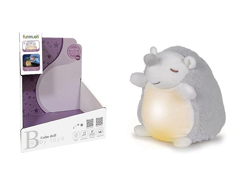 jeżyk pluszowy z projektorem obrotowym, z cichą muzyką, na baterie; 18x18x14cm, W/B
