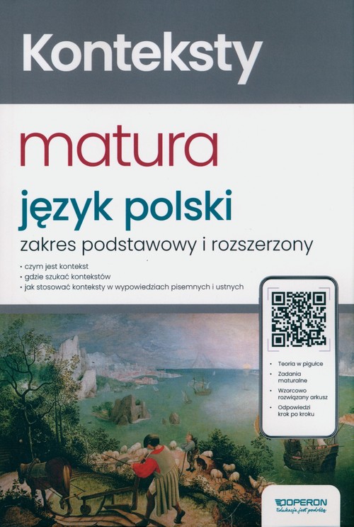 Czym jest kontekst? Jakie są rodzaje kontekstów? Jak wyszukiwać i stosować konteksty? Odpowiedzi na te i inne pytania dotyczące kontekstów w przygotowaniach do egzaminu maturalnego od roku 2023 zarówno ustnego, jak i pisemnego na obu poziomach znajdują się w tej publikacji. Pomoże ona uczniom oswoić się z koniecznością używania kontekstów, nie tylko dzięki wiedzy teoretycznej, ale także przez ćwiczenia praktyczne. Ponadto, na końcu publikacji znajdują się gotowe fiszki z wybranych dzieł kultury rozpisanych na konteksty i ich możliwe wykorzystanie.