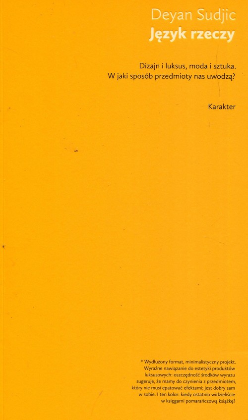 Z jakiego powodu niektóre przedmioty stają się fetyszami a inne archetypami? Jakie rytuały towarzyszą użytkowaniu przedmiotów i czy Włosi odbierają telefon tak samo jak Brytyjczycy?Dlaczego jedne przedmioty zużywają się szybciej a inne wolniej? W jaki sposób dizajnerzy z projektantów stali się twórcami opowieści? Co dziś jest prawdziwym luksusem: posiadanie pewnych rzeczy czy raczej rezygnacja z nich?Dlaczego dajemy się wciągać w obłędny trans konsumeryzmu? Na te pytania, a także wiele innych, odpowiada Deyan Sudjic, dyrektor Design Museum w Londynie. Odwołując się do konkretnych przykładów z historii i współczesności, pokazuje on, że dizajn to swoisty język, który podlega ewolucji i który warto nauczyć się czytać. Dzięki temu będziemy mogli lepiej zrozumieć otaczający nas świat i staniemy się bardziej świadomymi odbiorcami, a może nawet uda nam się uniknąć niektórych pułapek konsumpcjonizmu. Wciągający, błyskotliwy esej, który zmienia spojrzenie na wiele rzeczy. Deyan Sudjic jest dyrektorem Design Museum w Londynie. Opublikował wiele książek na temat architektury i dizajnu, m.in. The Edifice Complex: How the Rich and Powerful Shape the World, 100 Mile City i Norman Foster: A Life in Architecture. Współtworzył miesięcznik poświęcony architekturze ""Blueprint"", jako krytyk współpracował także z ""The Observer"". W 2002 roku był dyrektorem Biennale Architektury w Wenecji.
