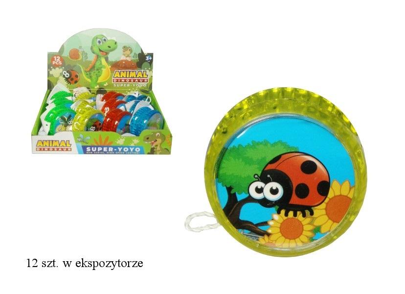 Zabawka yoyo ze zwierzątkami dla dzieci. Podczas zabawy świeci kolorowymi światełkami. Produkt występuje w kilku wersjach kolorystycznych wybierany losowo. Cena dotyczy jednej sztuki. Zabawka działa na baterie typu AG3. Baterie znajdują się w zabawce. Zabawka dla dzieci od 3 lat. Podane wymiary stanowią wymiar zabawki.
