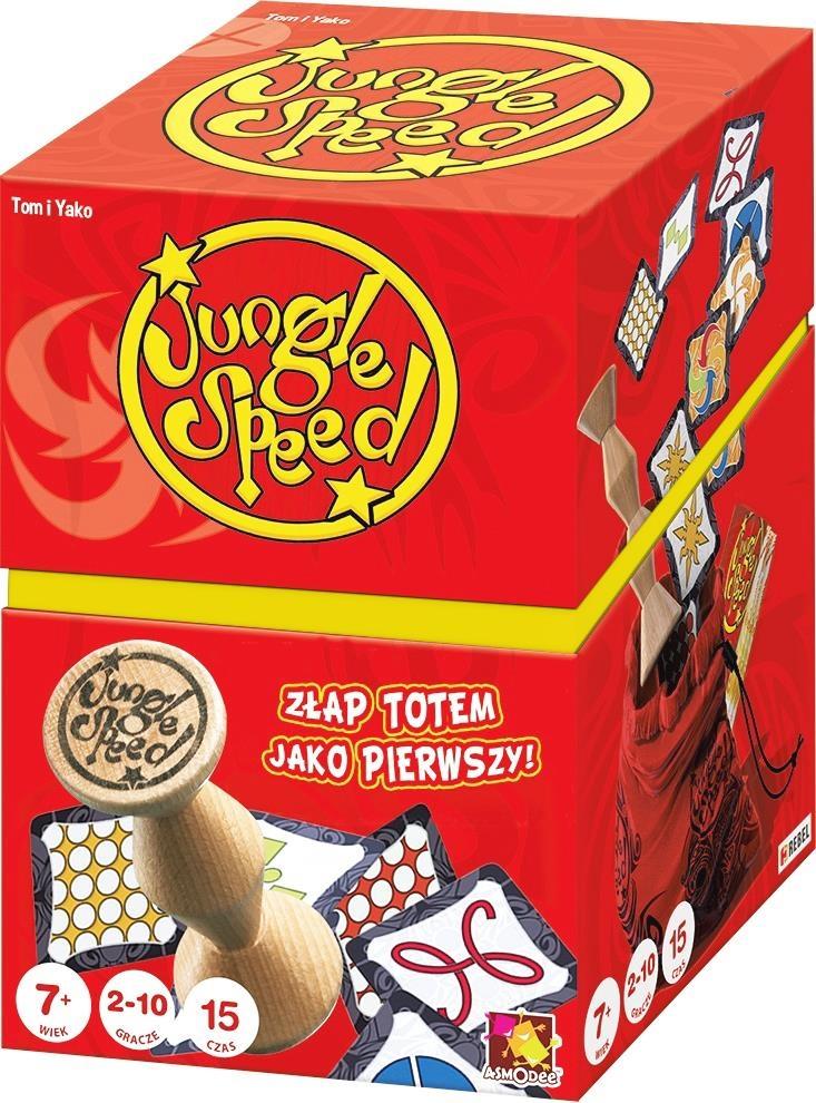 Nowa odsłona szalonej gry towarzyskiej! Nowe wydanie gry w której liczy się zręczność, spostrzegawczość i szybkość! Gry, gdzie każdy stara się jak najszybciej pozbyć swoich kart - aby to zrobić, musi w odpowiednim momencie złapać drewniany totem. Jeśli złapie go w złym momencie, albo w ogóle tego nie zrobi - będzie musiał wziąć karty od swoich przeciwników! Dlaczego ta gra jest taka rewelacyjna?! Pozwala siąść zupełnie obcym ludziom przy stole i razem świetnie się bawić! Nie wymaga żmudnego tłumaczenia zasad ani ich zapamiętywania. Zasady są dosłownie cztery, trudno o którejś z nich zapomnieć ;) Jest idealna na imprezę, pod namiot i rodzinne spotkanie, gdzie trudno znaleźć wspólny mianownik dla osób o różnych upodobaniach i w różnym wieku! Pozwala grać nieograniczonej liczbie osób! Nikt nie będzie się nudził!! NIE NUDZI SIĘ. Można grać w to przez trzy dni niemal non-stop i nie mieć dość! SPRAWDZONE! Jungle Speed jest absolutnie doskonała, idealna, jesteśmy jej szalonymi fanami i podchodzimy do niej bezkrytycznie!
