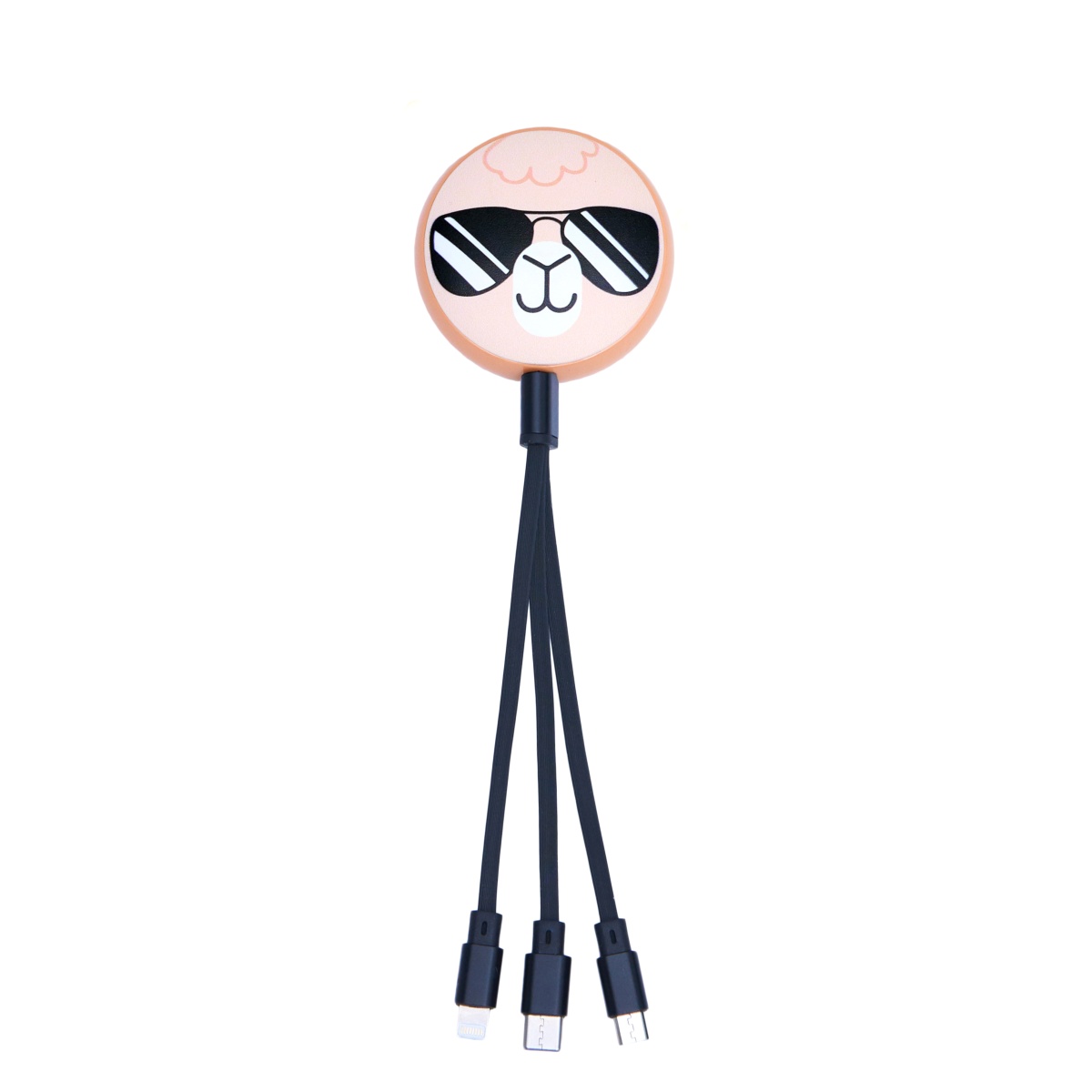 Kabel „Zwierzątka 3 w 1” to zwijany kabel wyposażony w 3 złącza: Lightning, Type-C i Micro-USB. Słodki wygląd połączony z funkcjonalnością.