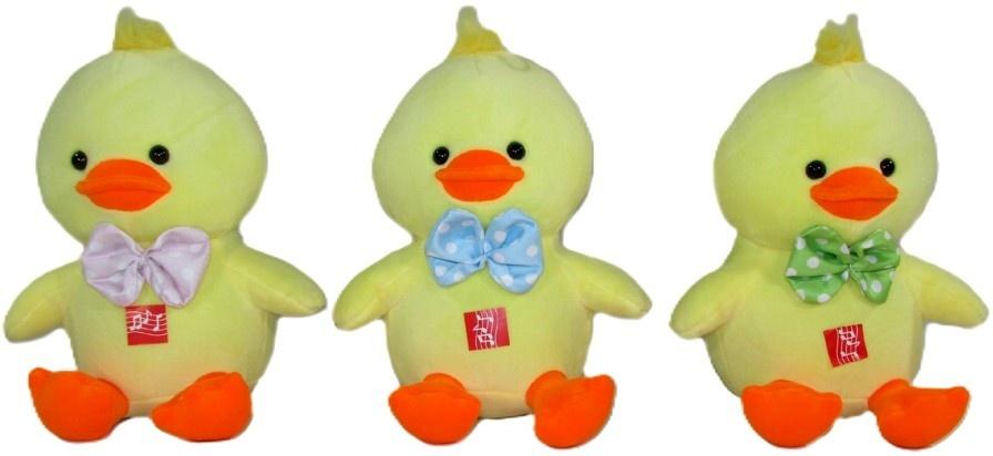 Pluszak kaczka. Puchaty i milutki. Wielkość całkowita: 20cm. Maskotka dźwiękowa - wydaje głos po naciśnięciu przycisku. Cena za sztukę.