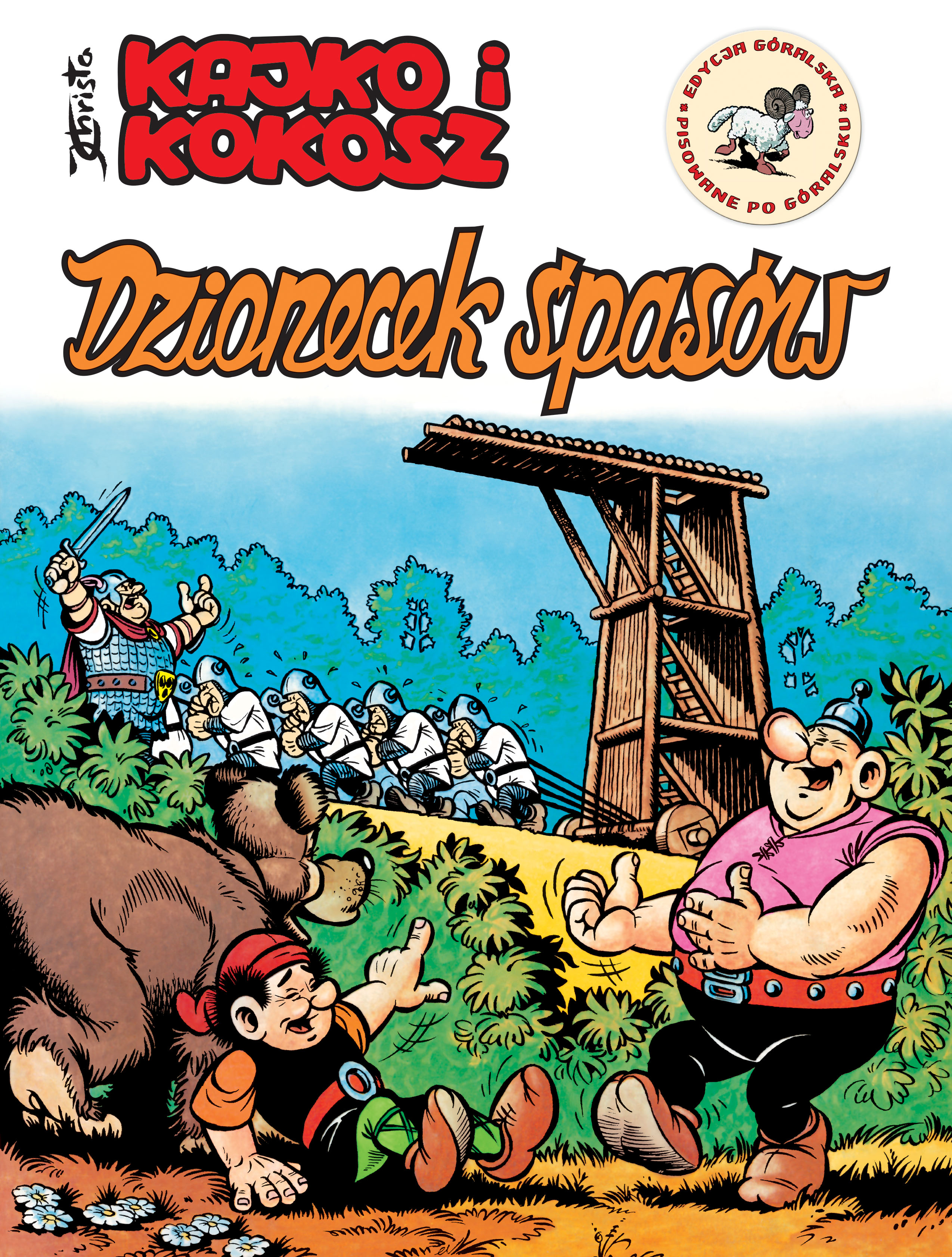 „Kajko i Kokosz – Dzionecek śpasów” (czyli „Dzień Śmiechały”) to czwarty album przetłumaczony na gwarę góralską (przed laty nakładem wydawnictwa Egmont w sprzedaży ukazał się album „Ogromniasto gońba”, w roku 2018 „Posiady guślorek”, a w 2019 – „Wodzicka zdrowości”). Cykl opowiada o dwóch wojach – dzielnym i rozważnym Kajku oraz żarłocznym i samolubnym Kokoszu, którzy bronią Mirmiłowa przed atakami niecnych Zbójcerzy pod wodzą Hegemona i przeżywają masę zabawnych przygód. Komiks autorstwa mistrza komiksu Janusza Christy powstawał w latach 70. i 80. XX wieku i był jedną z wizytówek czasopisma młodzieżowego „Świat Młodych”. W 2003 roku wydawnictwo Egmont Polska wznowiło serię, a dzięki tej reedycji wszystkie części komiksu ukazały się po raz pierwszy w kolorze. Kajko i Kokosz ruszyli na polowanie i... sami stali się łowną zwierzyną! Na szczęście niedźwiedź, który na nich zapolował, nie był zainteresowany zjedzeniem wojów, lecz ubiciem interesu. Był to bowiem Dziad Borowy, który za dnia jest zwierzęciem, nocą przybiera ludzką postać, a przez cały czas troszczy się o dobro lasu. Tymczasem z boru znika w ostatnim czasie mnóstwo drzewa! Kajko i Kokosz mają wyjaśnić sprawę. I szybko rozwiązują zagadkę: wandalami wycinającymi las w pień okazują się Zbójcerze, którzy mają szczególny pomysł na uczczenie pewnego jubileuszu - 50. próby zdobycia Mirmiłowa. A następnego dnia w grodzie dzieją się dziwne rzeczy: łóżko z Kokoszem odnajduje się rano na dachu jego chaty, Mirmił odkrywa, że zniósł w nocy jajko, a w dzbanie Kowala harcują myszy. O co chodzi? Zaczęło się święto dowcipu – Dzień Śmiechały! Barwna gwara skalnego Podhala w połączeniu z unikalnym humorem Chirsty to znakomita zabawa, a przy okazji materiał pomocniczy przy kultywacji gwary góralskiej. Nic dziwnego więc, że powstał już kolejny album po góralsku!
