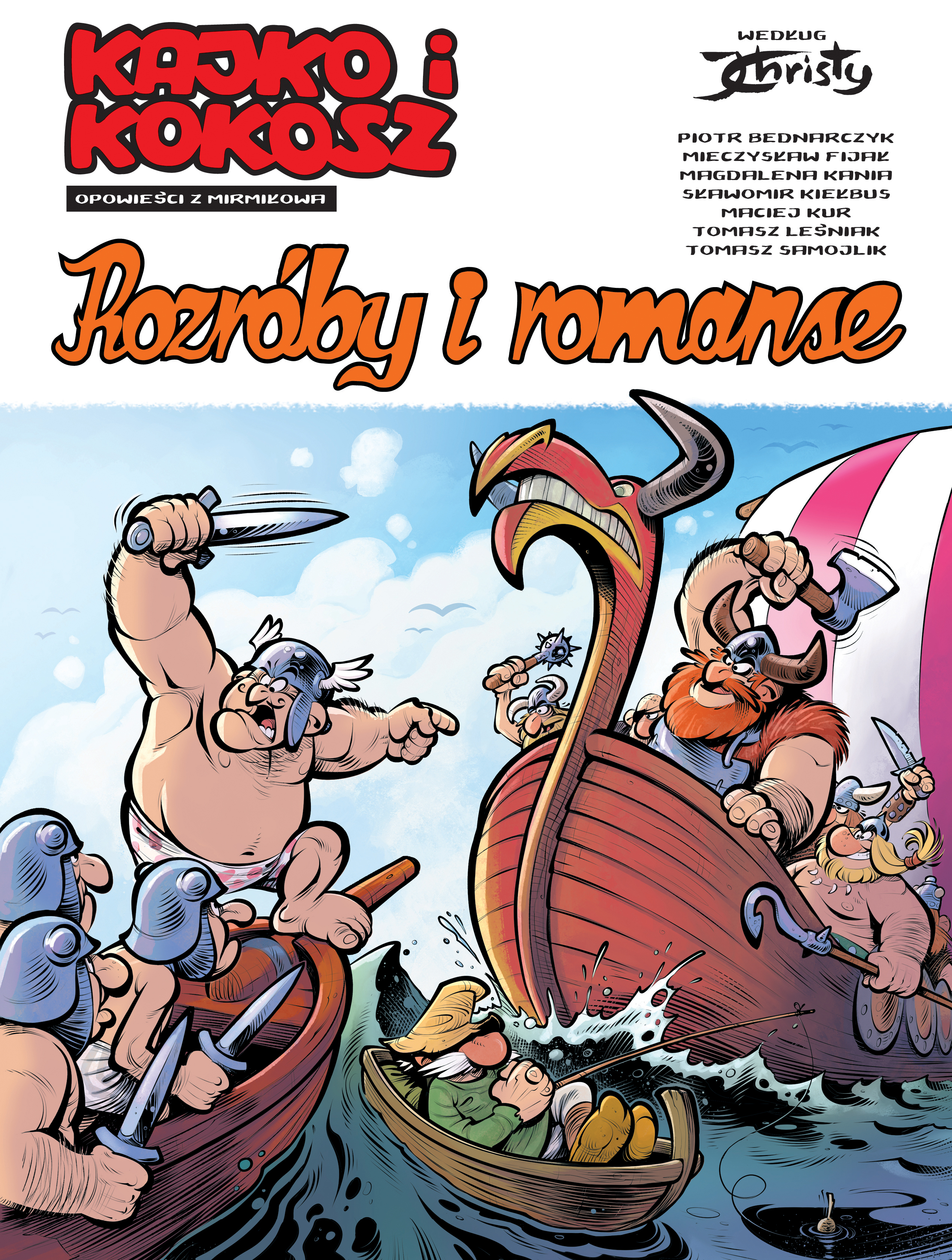 "Kajko i Kokosz" Janusza Christy (1934-2008) to jedna z najsławniejszych polskich serii komiksowych. W przezabawny sposób opowiada o przygodach dwóch słowiańskich wojów - mądrego i uczciwego Kajka oraz silnego i samolubnego Kokosza - służących kasztelanowi Mirmiłowi. Dwaj przyjaciele dzielnie bronią Mirmiłowa przed atakami niecnych zbójcerzy, raz po raz wpadając w tarapaty. "Kajko i Kokosz - Opowieści z Mirmiłowa" to oficjalna kontynuacja tej kultowej serii. Albumy zawierają po kilka krótkich historyjek, tworzonych przez znanych polskich rysowników. Komiksy tworzone są w różnych stylach, a ich głównymi bohaterami często są drugoplanowe postacie oryginalnej serii. Zawsze jednak pozostają wierne duchowi oryginalnych komiksów Janusza Christy, z ich pełną humoru i przygód akcją oraz cartoonową kreską. Tom "Rozróby i romanse" zawiera siedem historyjek autorstwa Piotra Bednarczyka, Mieczysława Fała, Magdaleny "Meago" Kani, Sławomira Kiełbusa, Macieja Kura, Tomasza Leśniaka i Tomasza Samojlika. Zbójcerze wreszcie wybiorą się na zasłużone wakacje, a także wymyślą nowy wspaniały podstęp. Łamignat będzie siał postrach na ziemiach Gromihorda. Woj Wit w porywie swojego serca wyruszy na pełną niebezpieczeństw wyprawę. Mirmił postanowi za wszelką cenę zwyciężyć w konkursie, który sam wymyślił, zabierze także swoją ukochaną żonę Lubawę w romantyczną podróż tylko we dwoje. Kokosz zaś odkryje w sobie wielki talent. Wraz z tym tomem ukazuje się także wznowienie dwóch pierwszych tomów serii - "Obłęd Hegemona" i "Łamignat Straszliwy" - z nowymi okładkami autorstwa Sławomira Kiełbusa.