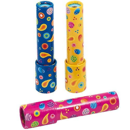 Zobacz, jak wygląda świat przez pryzmat zabawnego kalejdoskopu! Zabawka tworząca abstrakcyjne zestawienia kolorów i kształtów. Na twarzach dzieci pojawia się podziw i zachwyt nad magicznymi obrazkami pojawiającymi się wewnątrz tubki. Kalejdoskop wykonany z utwardzonej tektury. Grafika towaru wybierana jest losowo w zależności od stanów magazynowych. Długość 14,5 cm, średnica 3,5 cm.