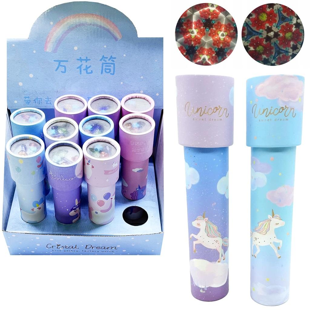 " Kalejdoskop jest klasyczną zabawką pobudzającą wyobraźnie dziecka, ma więc wszelkie szanse by stać się ulubioną zabawką dziecka. Wewnątrz znajdują się kolorowe elementy, które tworzą różne wzory. Wystarczy obracać obiektywem, a za każdym razem obraz zmieni się nie do poznania."