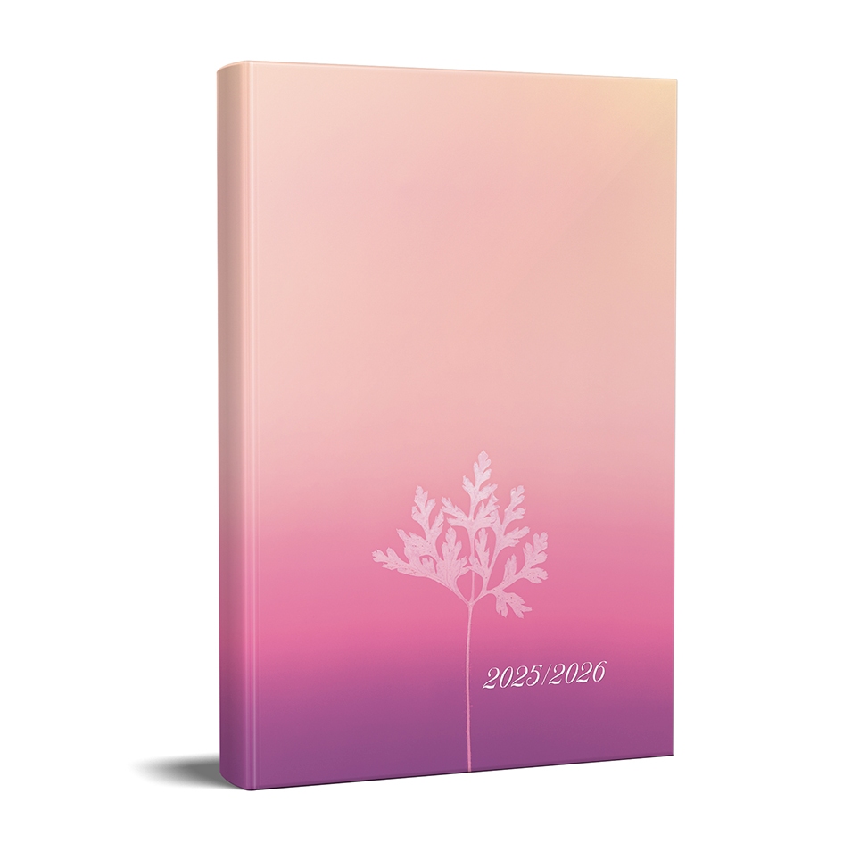 Miejsce na plan zajęć , Układ tygodniowy , 160 stron , Kalendarium od września 2025 do sierpnia 2026 ,Okładka ze złoceniami , Oprawa twarda Satynowa zakładka , Dwa kolory zadruku , Format 145 x 205 mm , Papier: offset 90 g